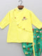 Yellow Layered kurta with car motif paired with green elasticated dhoti