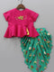 Back elastic printed dhoti pant with pink peplum top with hand embroidered bird motif