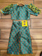 This coordinating set includes a charming green top with back hook eye closure and ruffled sleeves, paired with comfy back elastic pants. Plus, a convenient attached fanny bag with an eye-catching evil eye embroidery adds a stylish touch.