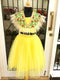 Decked out in hand embroidery, this U-shaped top flaunts feathers both in the front and back, perfectly paired with a net lehenga. The waistband and back elastic feature a fun touch of pearls.