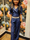 Elevate your child's wardrobe with this elegant Navy Pearl Embellished Cord Set. Crafted from premium crepe scuba fabric, this set features a top with a beautifully embellished collar on one side and charming puff sleeves. The matching pants showcase a pearl and sequin embellished waistband with comfortable back elastic for the perfect fit. A perfect blend of style and comfort for special occasions.