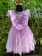 A stunning pink knee-length dress that'll make any girl feel like a princess! Crafted from delicate net fabric, this beauty features an ornate V-cut yoke adorned with shimmering pearls, katdana, and sequins that catch the light beautifully. The back steals the show with an oversized bow embellished with pearls for that extra touch of glamour. Perfect for special occasions, celebrations, or whenever she wants to sparkle and shine!