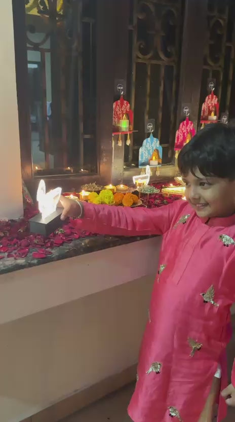 This charming pink silk kurta features playful sequins bird embroidery that adds a sparkling touch of fun. Paired with beige elastic pants, it ensures your little one moves with comfort and ease. Delightful stitch detailing on the collar and placket highlights the outfit’s unique character, perfect for making special moments shine.