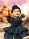 Introduce a touch of whimsy and delight with our Dark Blue Buttersilk Rose Frock. Crafted from soft buttersilk fabric in a rich and bold dark blue, this knee-length frock features a playful floral design on the chest and sparkling stones on the sleeves. Perfect for any little one who wants to stand out and have fun!