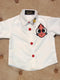 White half shirt featuring Nemo Fish and ladybird hand embroidery. red dice buttons further enhance the look.
