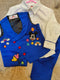 This set comprises of Disney theme royal blue waistcoat with hand embroidered motifs along with a white shirt and back elastic blue trouser.